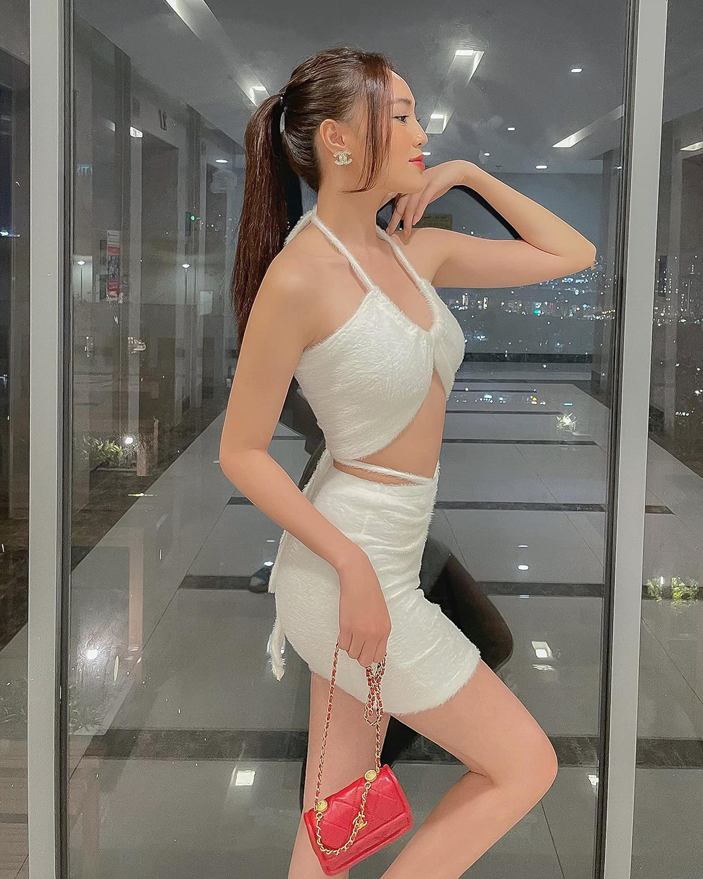 Diện trang phục cut-out đầy táo bạo, cô để lộ rõ vòng eo thon gọn và khoe khéo hình thể nuột nà.