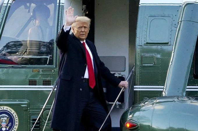 Trump lên trực thăng rời Nhà Trắng tới Florida vài giờ trước khi Joe Biden tuyên thệ nhậm chức hôm 20/1. Ảnh: AP