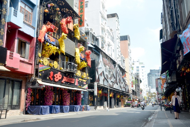 Hàng loạt quán bar, beer club, quán nhậu trên đường Bùi Viện (quận 1, TPHCM) đóng cửa từ đêm 8/2 để phòng chống dịch Covid-19. Khung cảnh ở phố Tây vắng lặng lạ thường trong ngày 28 Tết.