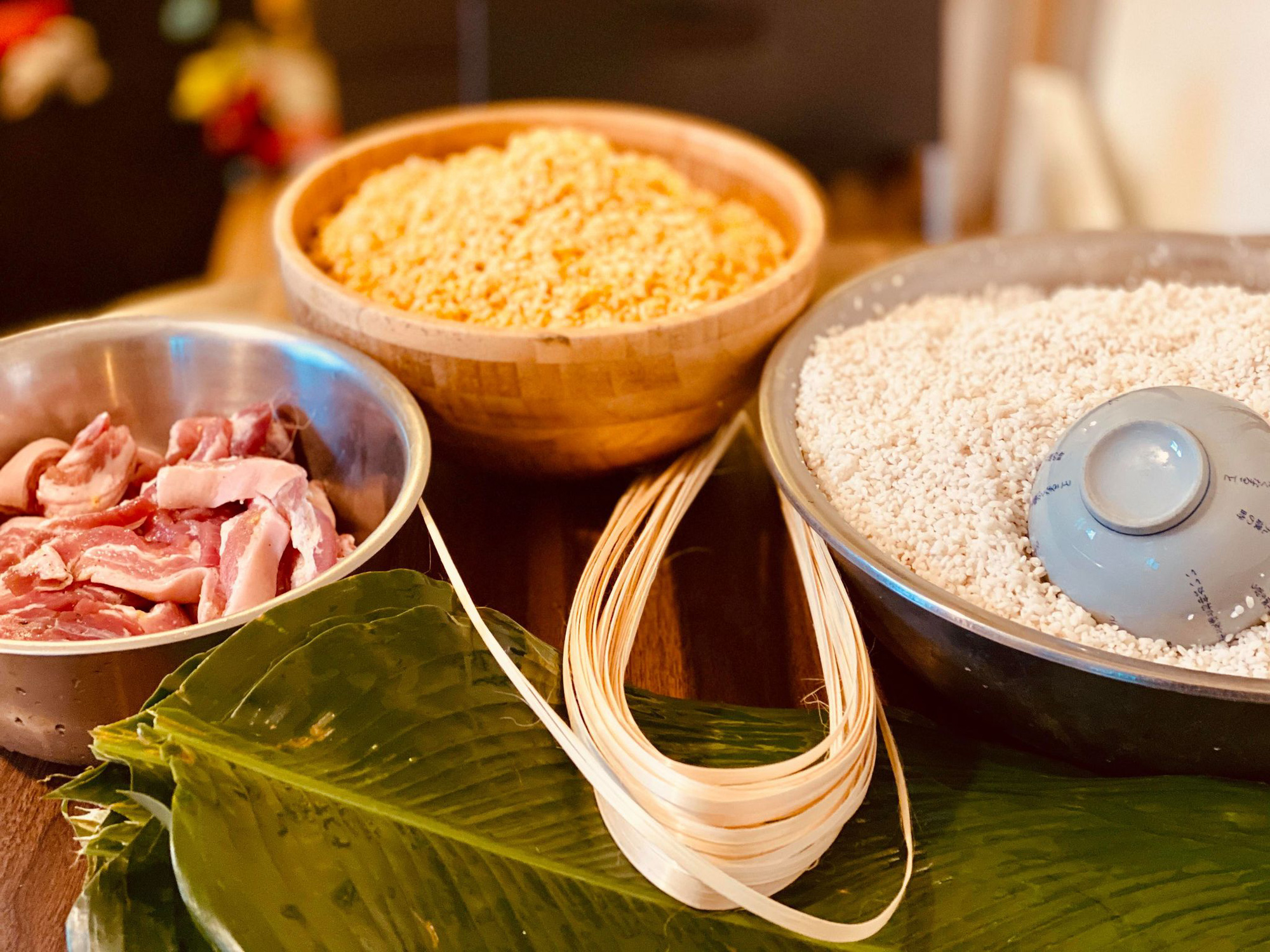 Nguyên liệu gói bánh chưng của gia đình chị Dương Soạn ở Pháp.