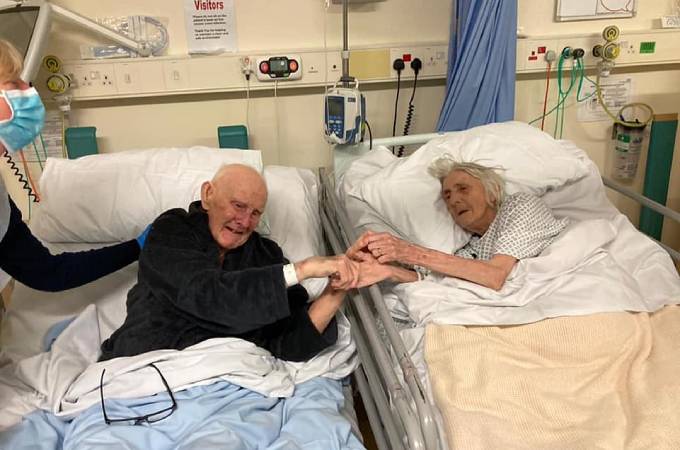Cụ bà Margaret và chồng Derek Firth, đều 91 tuổi, qua đời tại Bệnh viện Đa khoa Trafford hồi tuần trước, nhưng cả hai đã được gặp nhau vài ngày trước khi chết. Cặp vợ chồng, sống ở Partington, yêu nhau từ năm 14 tuổi và đã kết hôn được 70 năm.
