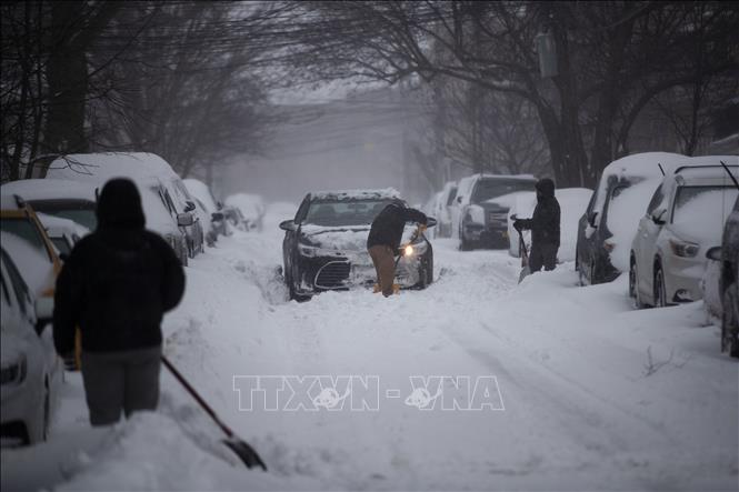 Ô tô bị mắc kẹt do tuyết rơi dày đặc tại New York, Mỹ. Ảnh minh họa: THX/TTXVN