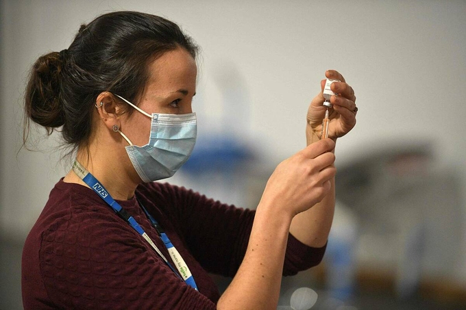 Một nhân viên y tế tiêm vaccine ở Anh hồi tháng một. Ảnh: AFP.