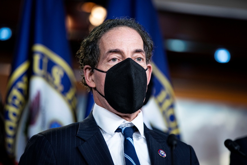 Hạ nghị sĩ Dân chủ Jamie Raskin, người đứng đầu nhóm công tố viên đại diện Hạ viện, trong cuộc họp báo sau phiên tòa ngày 13/2. Ảnh: Reuters.