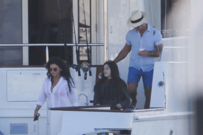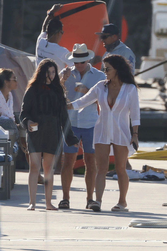 Mặc quần đùi màu xanh đậm, áo sơ mi ngắn tay màu xanh nhạt và đội mũ phớt, Jeff Bezos cùng bạn gái Lauren Sanchez, mặc bộ bikini màu đỏ, bên ngoài khoác áo sơ mi trắng, bước xuống từ du thuyền sang trọng ở bến tàu Cabo San Lucas, Mexico. Cặp đôi đi cùng Eleanor Patricia Whitesell, con gái riêng của Lauren Sanchez và chồng cũ Patrick Whitesell.
