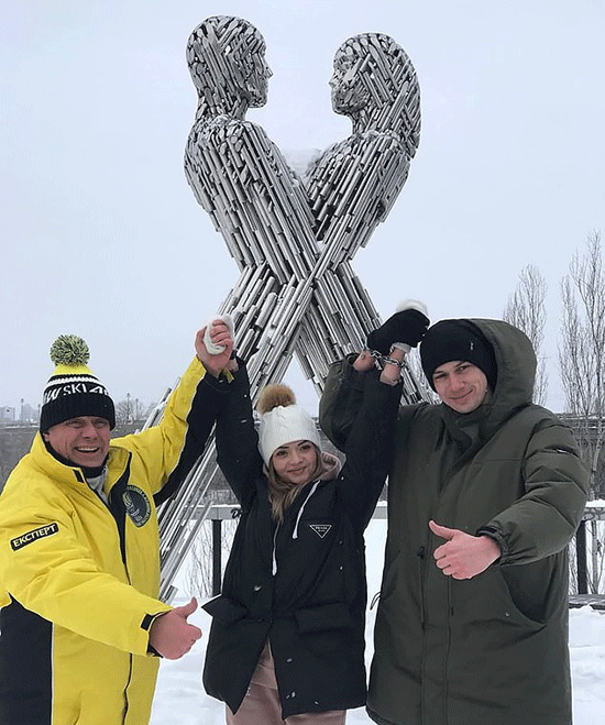 Hôm 14/2, đúng lễ Tình nhân, Alexander và Viktoria chọn đứng dưới tác phẩm điêu khắc Unity nổi tiếng tại Kyiv để thực hiện "nghi lễ" trói tay hai người lại với nhau.