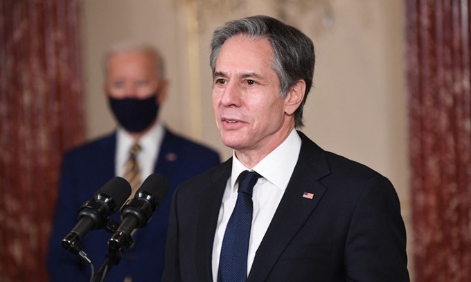 Ngoại trưởng Mỹ Antony Blinken tại cuộc họp báo ở Bộ Ngoại giao hôm 4/2. Ảnh: AFP.