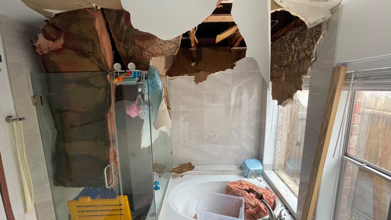 Sáng ngày 16/2, trong lúc làm đồ ăn sáng, anh Phương phát hiện nước bắt đầu rỉ từ trần nhà xuống. "Đến ngày hôm nay (18/2), trần nhà bị dột nặng hơn. Tôi đục một lỗ để giảm áp lực nước. Tuy nhiên, một mảng trần nhà vẫn rớt xuống. Gió lùa vào nhà rất lạnh", anh Phương nói với PV tối 18/2 (giờ địa phương).