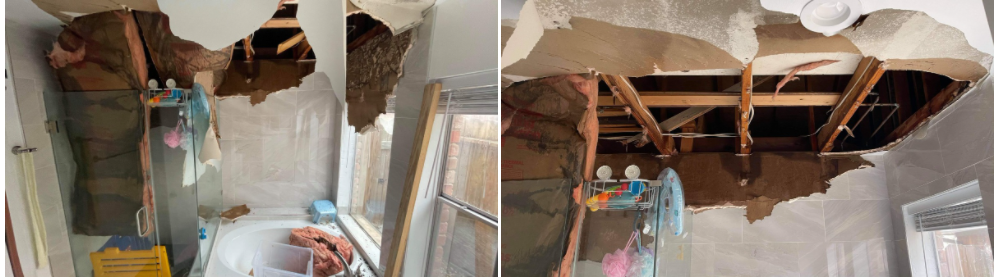 Không may mắn như Nam, một số người Việt chia sẻ trên các nhóm Facebook hình ảnh trần nhà bị hư hại do nước, chỉ còn trơ ra khung gỗ của trần nhà, và nhìn lên tận mái nhà.