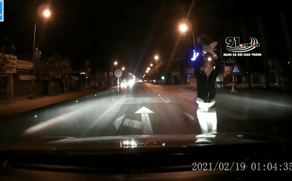 Vụ việc xảy ra vào 1h04 ngày 19/2 và được camera hành trình của ô tô ghi lại. Chiếc xe đang di chuyển thẳng thì bất ngờ gặp một nam thanh niên có biểu hiện bất thường. Người này nhảy múa để chặn đường ô tô. Dù tài xế đã bấm còi cảnh báo nhưng có vẻ nam thanh niên vẫn phớt lờ.