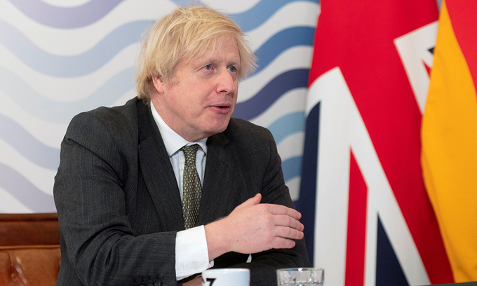 Thủ tướng Anh Boris Johnson chủ trì cuộc họp trực tuyến của lãnh đạo G7, ngày 19/2. Ảnh: Reuters.