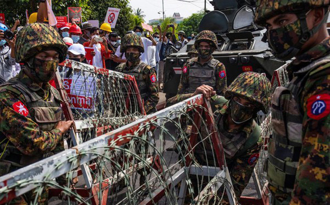 Một đoạn video trên mạng xã hội cho thấy hàng rào dây thép gai được giăng khắp các tuyến đường tới một số đại sứ quán ở thành phố lớn nhất, Yangon, điểm tập trung của các cuộc biểu tình gần đây. Nhiều xe chuyên dụng của cảnh sát và quân đội tuần tra dọc các tuyến phố.