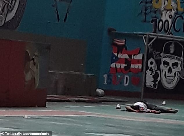 Một tù nhân nằm trên vũng máu sau cuộc bạo loạn.