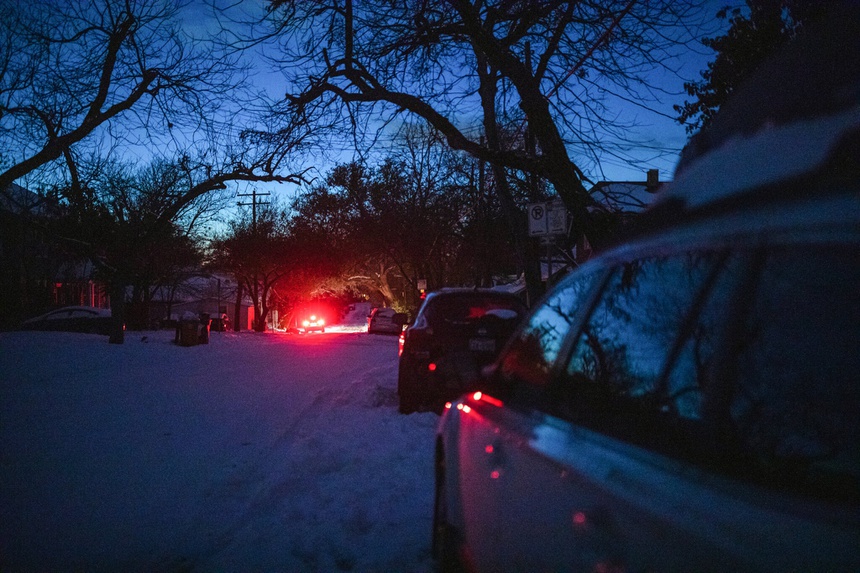 Một con phố bị mất điện ở Austin, Texas vào tuần trước. Ảnh: New York Times.