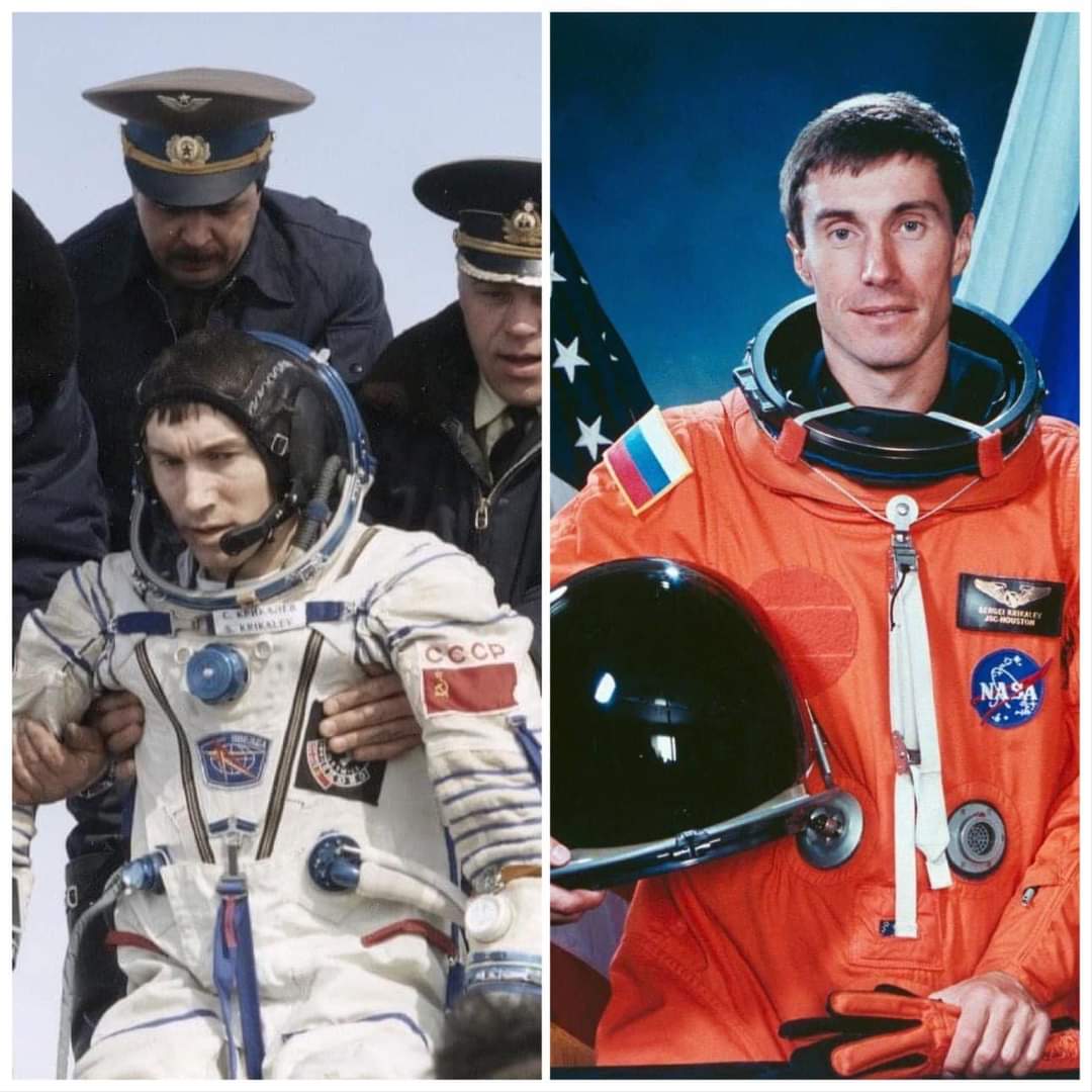 Sergei Krikalev trở về trái đất vào ngày 25 tháng 3 năm 1992 trong bộ đồ bay của phi công vũ trụ vẫn còn viết ký tự CCCP (USSR) thậm chí khi trồi ra khỏi khoang tiếp đất, ông còn cầm lá cờ Liên Xô vẫy vẫy để cho báo chí chụp ảnh như được huấn luyện về tuyên truyền đúng bài bản dưới thời Liên Xô.
