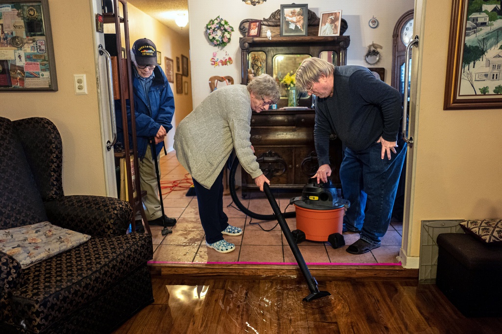 Những chiếc ghế của họ đẫm nước. Các tấm ván sàn trong phòng ăn bị vênh vì ẩm, gây nguy hiểm cho hai ông bà từng thay khớp hông, khớp gối và phải chống gậy. Hiện tại, ông bà Culver đang ở với bạn bè cho đến khi nhà họ có nước trở lại.