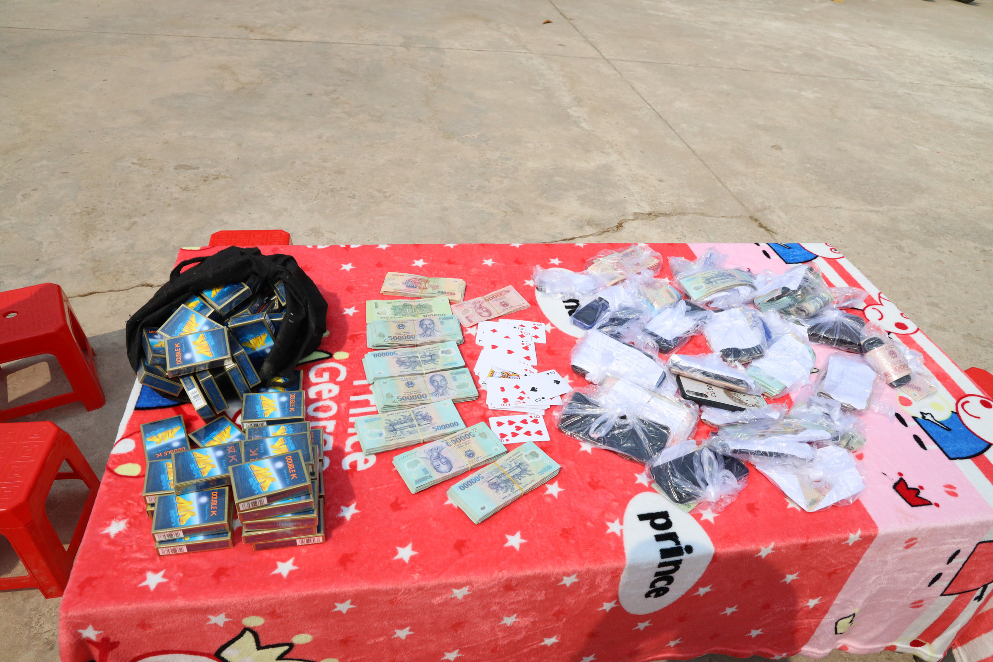 Tang vật thu được tại sòng bạc.