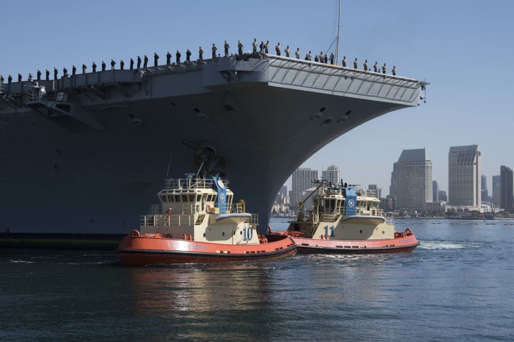 Ngay cả trong những lần hiếm hoi cập vào các cảng ở Guam, Manama hay Bahrain, thủy thủ đoàn 5.000 người không được phép rời bờ theo truyền thống mà phải ngủ trên tàu hoặc trong bến với khoảng 100 thủy thủ khác. Họ được yêu cầu không tiếp xúc với người trên đất liền vì diễn biến của dịch Covid-19.