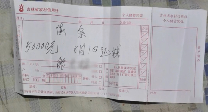 Tờ giấy nợ ghi tên người họ Trương. Ảnh: CCTV.