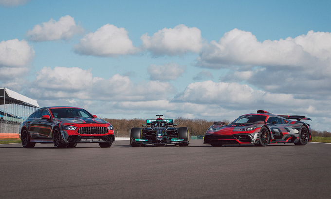 Từ trái qua phải: GT 73, xe đua F1 W12 và hypercar One trong một sự kiện nội bộ của hãng. Ảnh: Mercedes