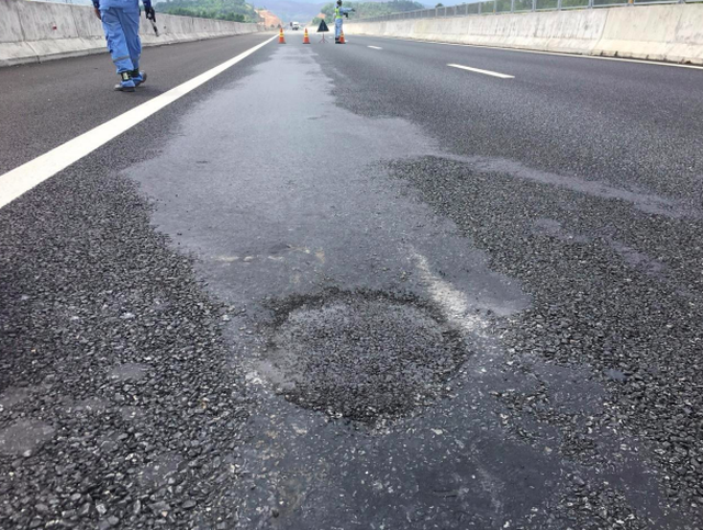 Một đoạn đường hư hỏng của cao tốc Đà Nẵng - Quảng Ngãi.