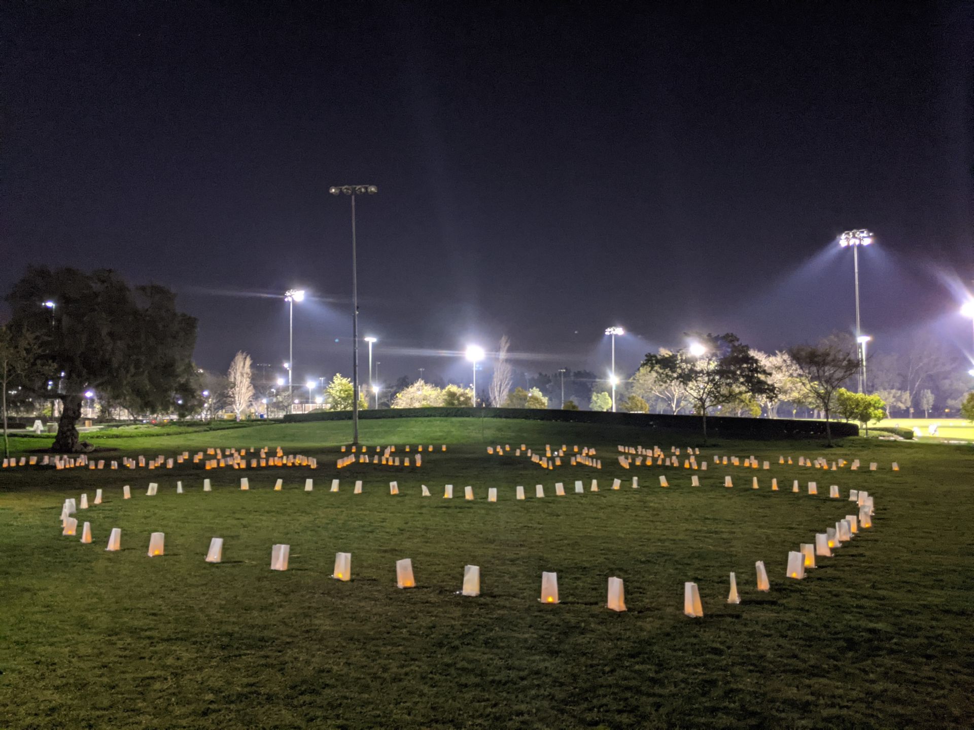 Ngoài bãi cỏ, các tình nguyện viên phải đặt 400 ngọn đèn, để xếp thành dòng chữ “Stop Asian Hate” và thành hình trái tim.