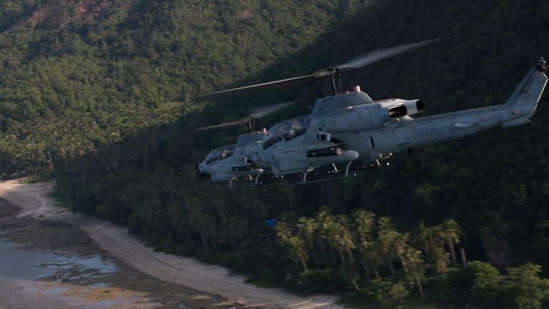 Trực thăng AH-1W của thủy quân lục chiến Mỹ hoạt động gần căn cứ không quân Clark, Philippines. Ảnh: Bộ Quốc phòng Mỹ.