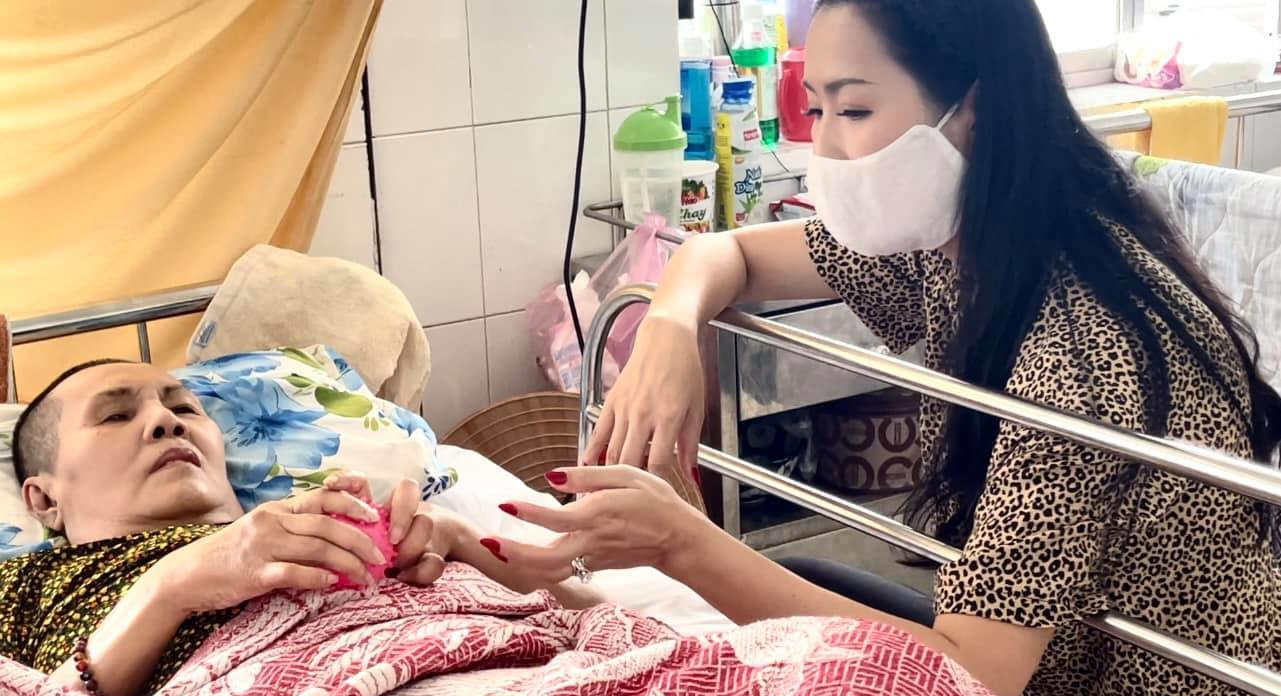 NSƯT Trịnh Kim Chi xúc động khi trực tiếp đến thăm nghệ sĩ Hoàng Lan tại bệnh viện.