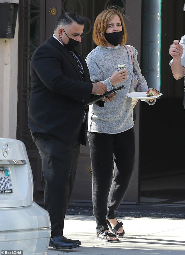 Nhìn Emma "dừ" hơn hẳn khi để mặt mộc và tóc rối xuống phố