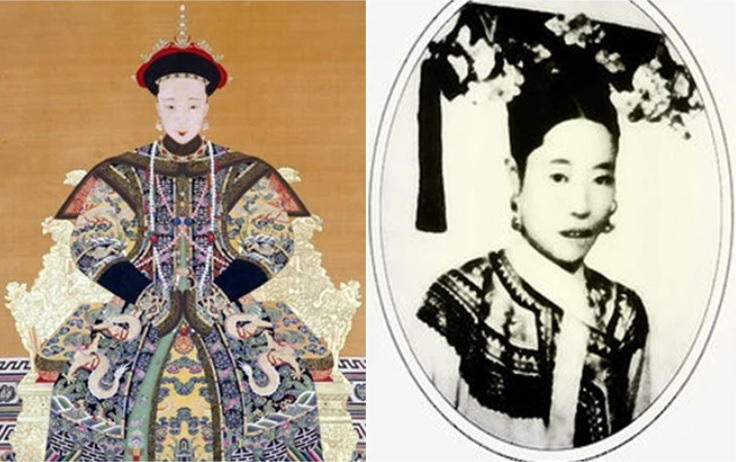 Tranh chân dung Long Dụ Hoàng hậu (bên phải) và ảnh chụp.