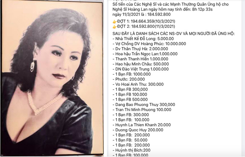 Old  Default Trịnh Kim Chi quyên góp gần 400 triệu giúp nghệ sĩ Hoàng Lan, công khai từng người ủng hộ