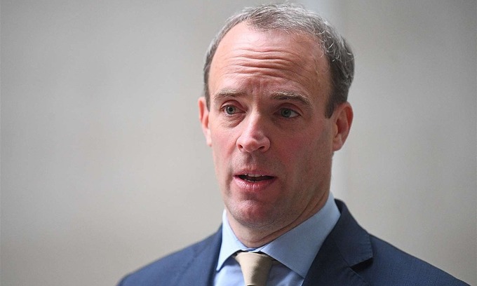 Ngoại trưởng Anh Dominic Raab tại London tháng 11/2020. Ảnh: Reuters.