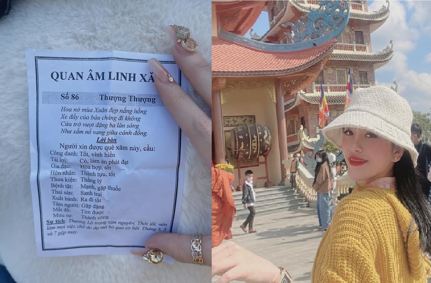 Trang còn khiến nhiều người mến mộ vì sự thân thiện. Đó là những hình ảnh cô nàng đi chùa, đi từ thiện...