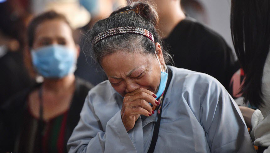 Mẹ Minh Lộc đau đớn trước sự ra đi của con trai. Ảnh: Duy Hiệu.