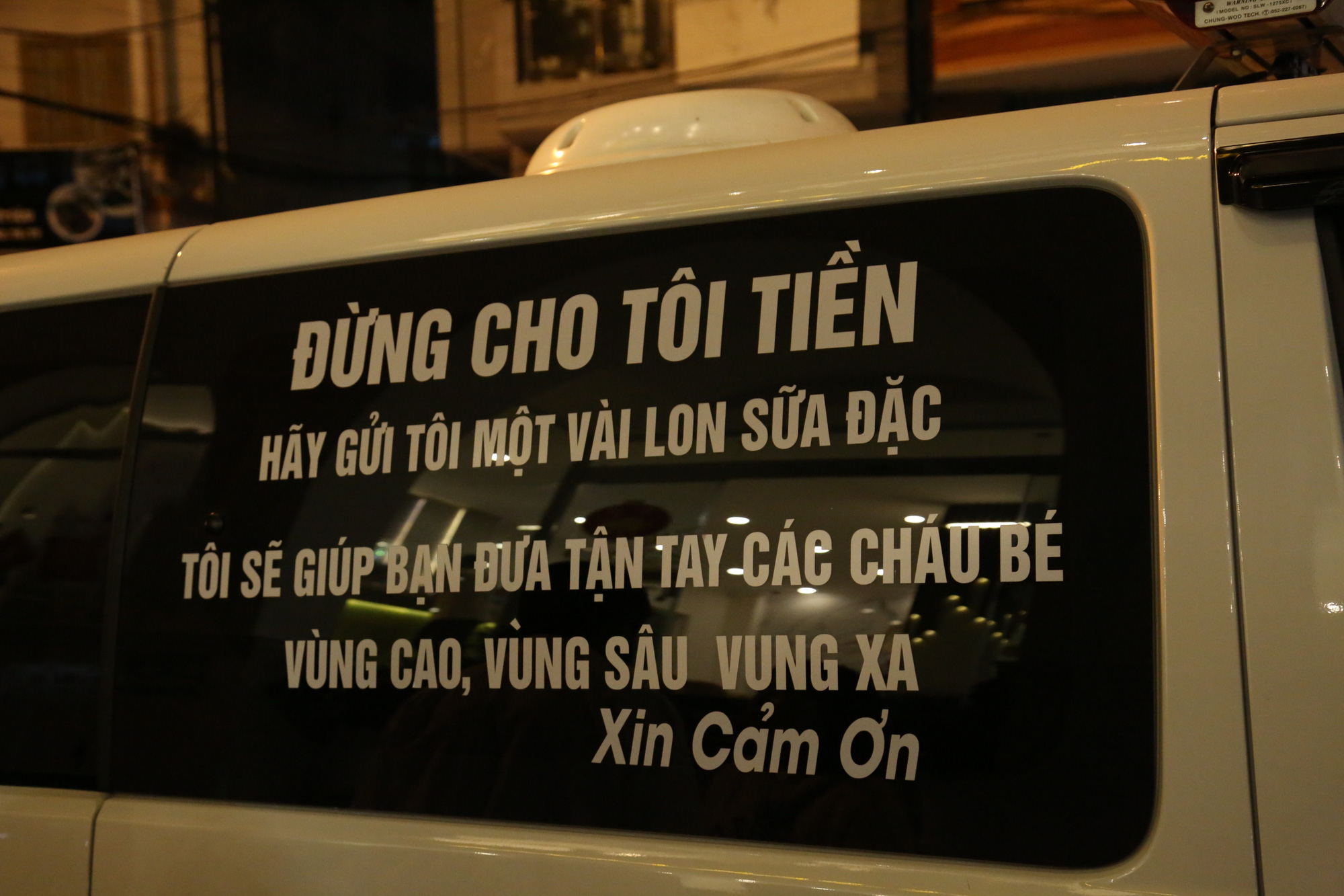 "Con ngựa thồ" của ông Hải với dòng chữ gây chú ý cho người qua đường.