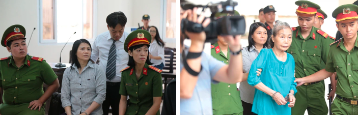 Bốn bị cáo gồm: Phạm Thị Thiên Hà (32 tuổi, ngụ quận Tân Phú, TP.HCM); Trịnh Thị Hồng Hoa (67 tuổi, mẹ của Hà); Lê Ngọc Phương Thảo (30 tuổi, quê Tiền Giang) và Nguyễn Ngọc Tâm Huyên (40 tuổi, quê Quảng Ngãi).