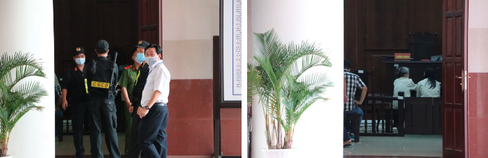 Ghi nhận lúc 7h30 - 8h30 sáng 15/3, lực lượng an ninh kiểm soát chặt chẽ những người đến tham dự phiên tòa. Phóng viên các báo đài tỏ ra khá hoang mang khi được bố trí ngồi trong phòng kín, theo dõi phiên xử công khai qua màn hình tivi, không được bước ra khỏi khu vực phòng, bên ngoài có lực lượng bảo vệ giám sát.