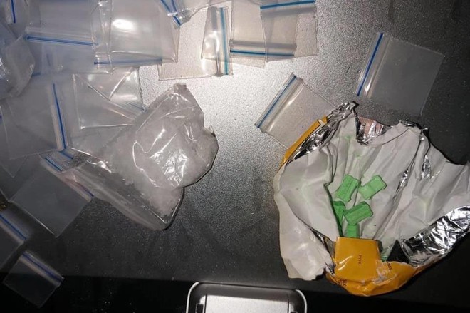 Tại chỗ, lực lượng Công an thu giữ tang vật là 1 túi nilon chứa tinh thể màu trắng, 11 viên nén, 1 cân điện tử cùng hàng trăm vỏ túi nilon.
