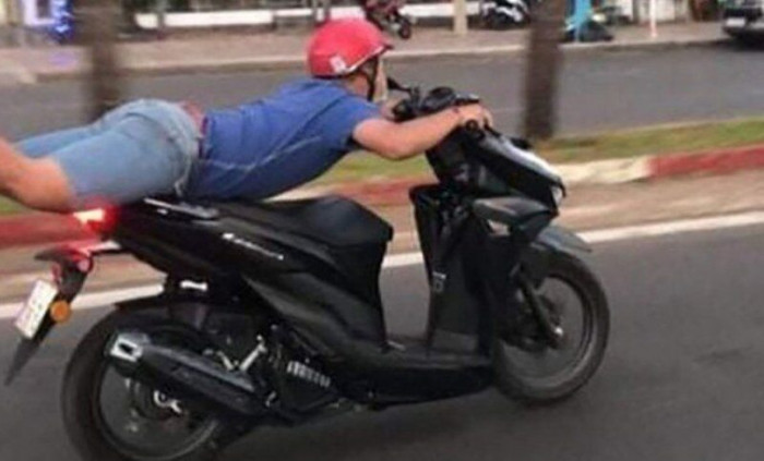 Old  Default Người đàn ông “tổ lái” xe máy bằng cách nằm lên yên xe