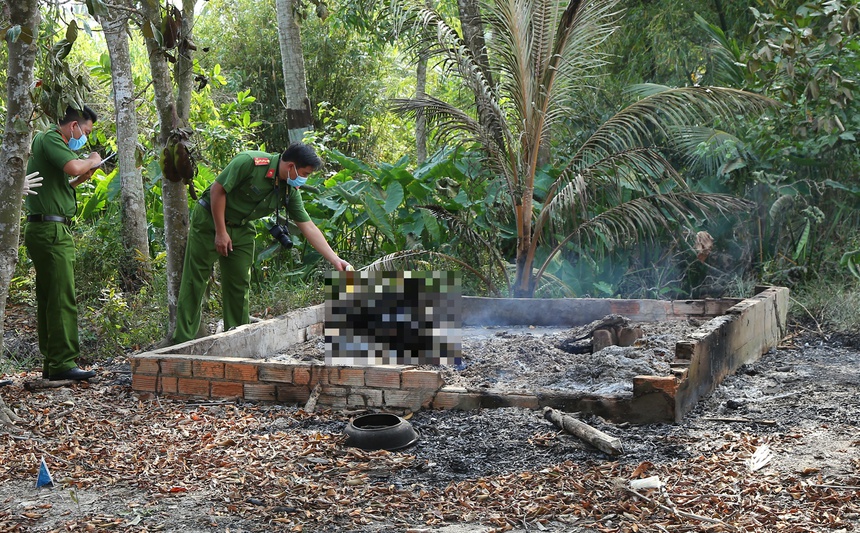 Cảnh sát khám nghiệm thi thể chết cháy. Ảnh: Quỳnh Mai.