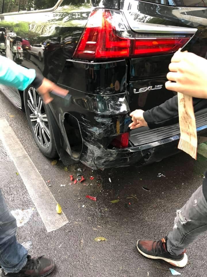 Nam thanh niên đang lưu thông trên đường. Do mải tránh 1 chiếc xe khác đi cùng chiều nên tài xế giao hàng đã tông vào đuôi của 'chuyên cơ mặt đất' Lexus LX570. Vụ va chạm có khả năng tài xế mất nửa năm lương.