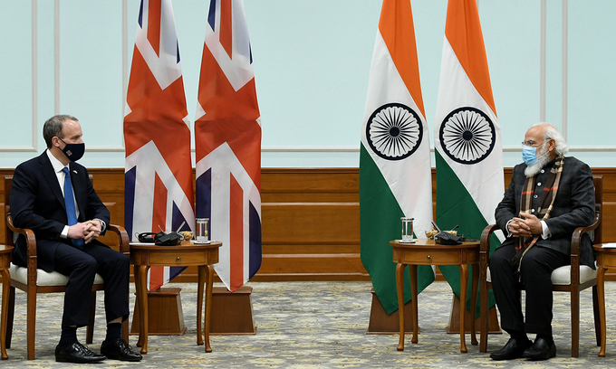 "Nếu nh́n vào Ấn Độ cùng khu vực Ấn Độ Dương - Thái B́nh Dương và có tầm nh́n dài hạn, bạn sẽ thấy đây là nơi sở hữu cơ hội tăng trưởng", Ngoại trưởng Raab phát biểu trong chuyến thăm Ấn Độ hồi tháng 12/2020.