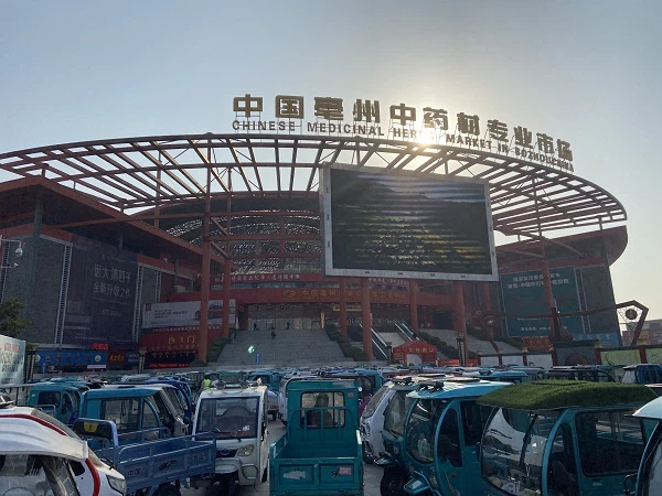 Trước cửa chợ đặc sản Trung dược thành phố Bặc Châu, các xe xếp hàng nườm nượp để chờ vận chuyển Tử Hà Sa. Ảnh: The Paper