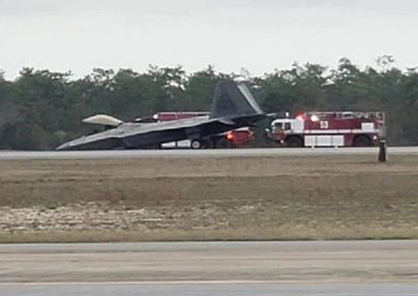 Một bức ảnh được công bố trên mạng xã hội Facebook dưới tài khoản "Air Force amn/nco/snco" cho thấy dường như đó là hiện trường vụ chiếc tiêm kích tàng hình F-22 bị "sấp mặt". Nó chúi mũi xuống đường băng với nắp buồng lái đã mở ra, bên cạnh đó là 2 chiếc xe cứu hỏa.