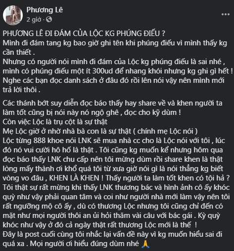 Bài đăng đính chính của Phương Lê - Ảnh: FB