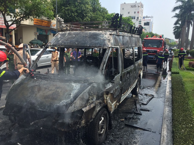 Đang chạy trên đường Điện Biên Phủ (TP Đà Nẵng), xe chở quan tài của một đơn vị kinh doanh dịch vụ tang lễ bất ngờ bốc cháy, hư hỏng hoàn toàn.