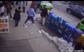 Hình ảnh trích trong video an ninh tại San Francisco. 3 kẻ to khoẻ quật ngã một ông lão 67 tuổi, cướp bóc một cách tàn nhẫn