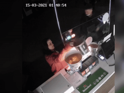 Đoạn phim CCTV tại rạp đã ghi hình cặp đôi này đột nhập vào rạp chiếu phim Kinograd tại trung tâm mua sắm Nam Cực ở Saint Petersburg vào ngày 18 tháng 3. Trong đoạn CCTV, có thể thấy cặp đôi đã ăn trộm bỏng ngô và đồ uống trước khi vào phòng chiếu phim.