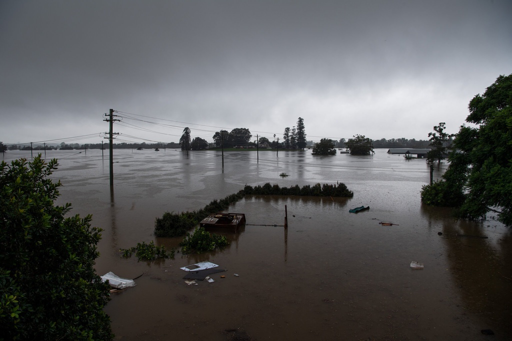 Nhiều căn nhà, tuyến đường và gia súc tại Australia bị nước lũ cuốn trôi hoặc rơi vào tình cảnh cô lập giữa biển nước vì trận ngập nghiêm trọng nhất vùng duyên hải phía đông trong nhiều thập kỷ qua. Theo BBC, một phần bang New South Wales ghi nhận lượng mưa ngày 22/3 lên đến 1 m. Lượng mưa có thể đạt đỉnh trong ngày 23/3. Hàng nghìn người đã được sơ tán. Ảnh: AFP.