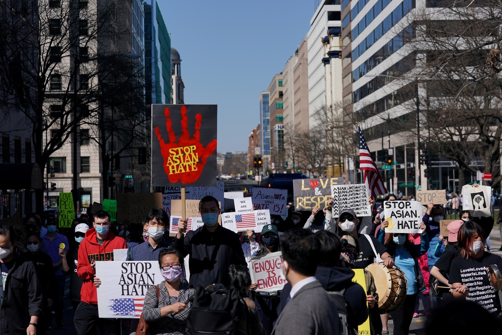 Một cuộc biểu tình chống kỳ thị người gốc Á ở Washington hôm 21/3. Ảnh: Reuters.